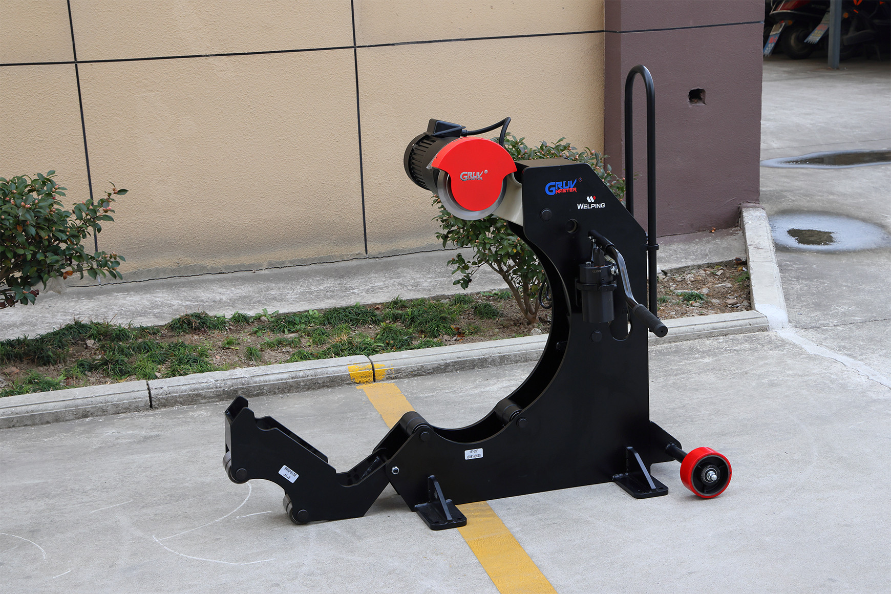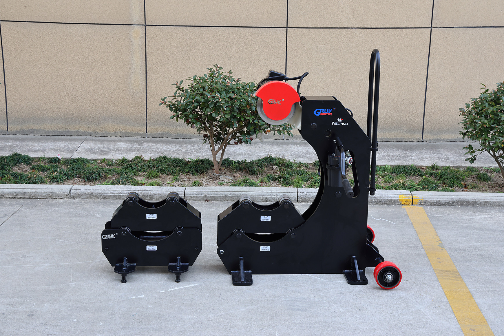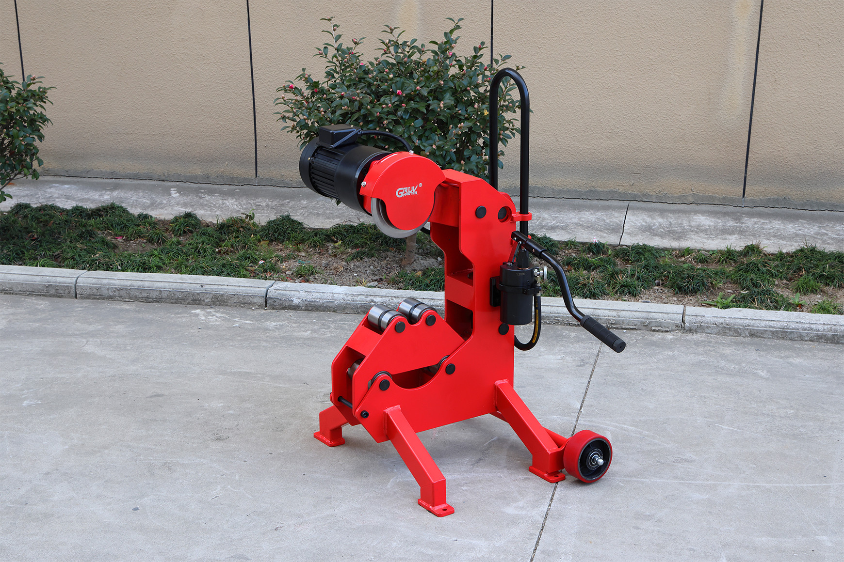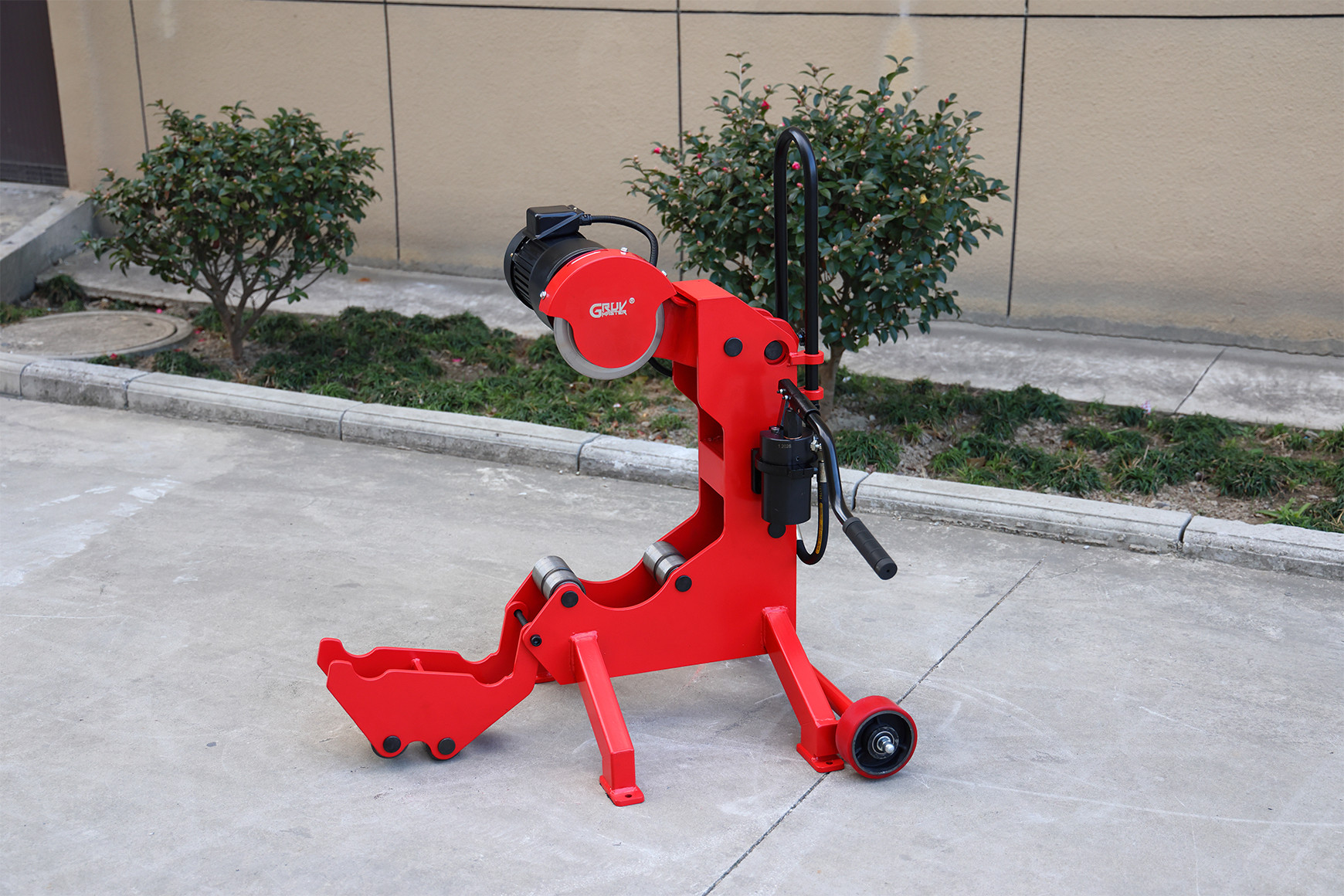 The machine integrates roller supports for different pipe sizes, allowing heavy and long pipes to be supported during cutting. This improves stability and reduces the need for manual assistance. Transport wheels and a pull handle make the machine easier to move around job sites or fabrication areas.